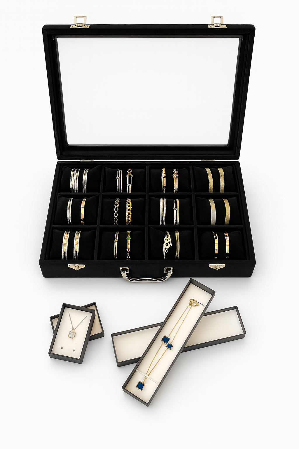 Individuell abgestimmte Schmuckkästchen – Fächer & Inlays passend zu Ihrem Sortiment.