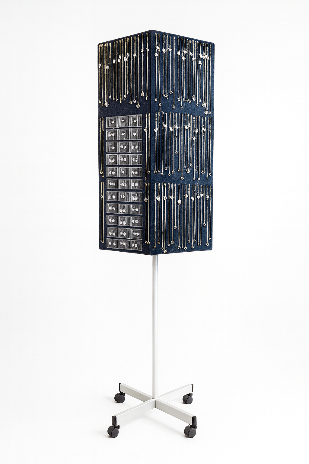 Kapazität des Ständers: 160–200 Ketten (Nagellayout anpassbar) + 96 Ohrstecker-Module individuell anpassbar